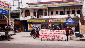 “DPRD Kampar SABUN dan Pemkab Kampar ASING” Tulisan di Spanduk GPPI Demo Indomaret di Bangkinang Kota