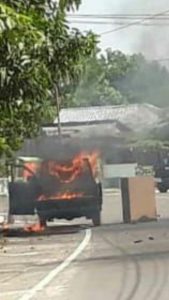Tak Diketahui Penyebabnya, Melintas di Bundaran Pramuka Mobil Pick Up Hangus Terbakar