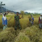 Babinsa Koramil 08/Parmonangan bersama Poktan lakukan pengubinan panen padi