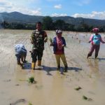 Mendukung ketahanan pangan, Babinsa Koramil 06/Kerajaan membantu petani menanam padi di Desa Sukaramai