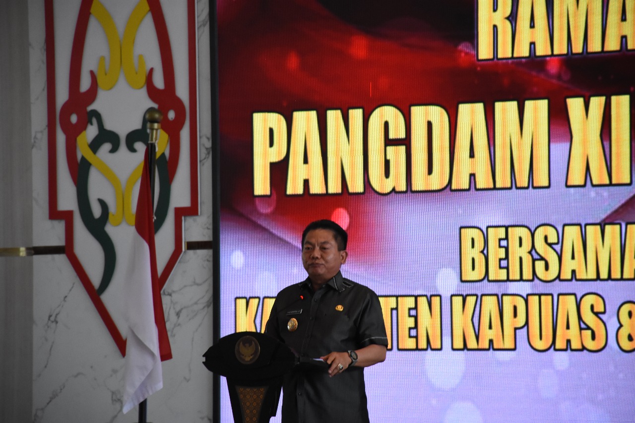Sementara itu, Pangdam XII/Tanjungpura, Mayjen TNI Jamalullael, S.Sos., M.Si., dalam sambutan balasannya menyampaikan rasa terima kasih dan apresiasi atas sambutan hangat dari Pemerintah Kabupaten Kapuas dan seluruh tokoh masyarakat yang hadir.