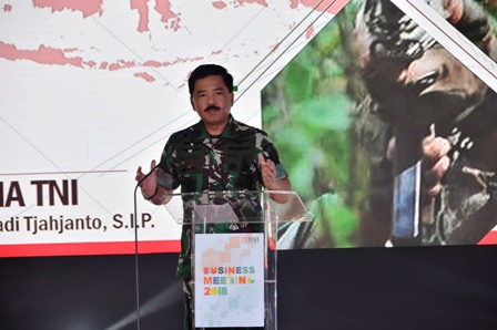 Hal tersebut disampaikan Panglima TNI Marsekal TNI Hadi Tjahjanto, S.I.P dihadapan 100 orang peserta Business Meeting 2018 di Royal Tulip Hotel, Gunung Geulis, Bogor, Jawa Barat, Sabtu (10/2/2018).