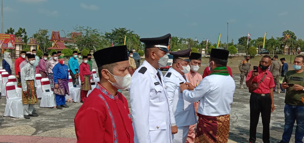Pelalawan, lintas10.com- Bupati Pelalawan H Zukri merembok pejabat eselon III dan IV dengan jumlah keseluruhan 183 orang, bertempat di lapangan halaman upacara Kantor Bupati Pelalawan, Jumat (30/7/2021)