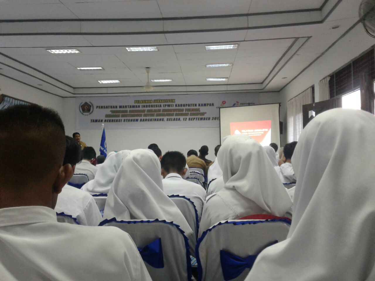 BANGKINANG KOTA,LINTAS10.COM- Persatuan Wartawan Indonesia (PWI) Kampar, adakan pelatihan jurnalistik kepada siswa dan mahasiswa di Kampar. Kegiatan ini diadakan di aula objek wisata Stanum, Selasa (12/9/17).