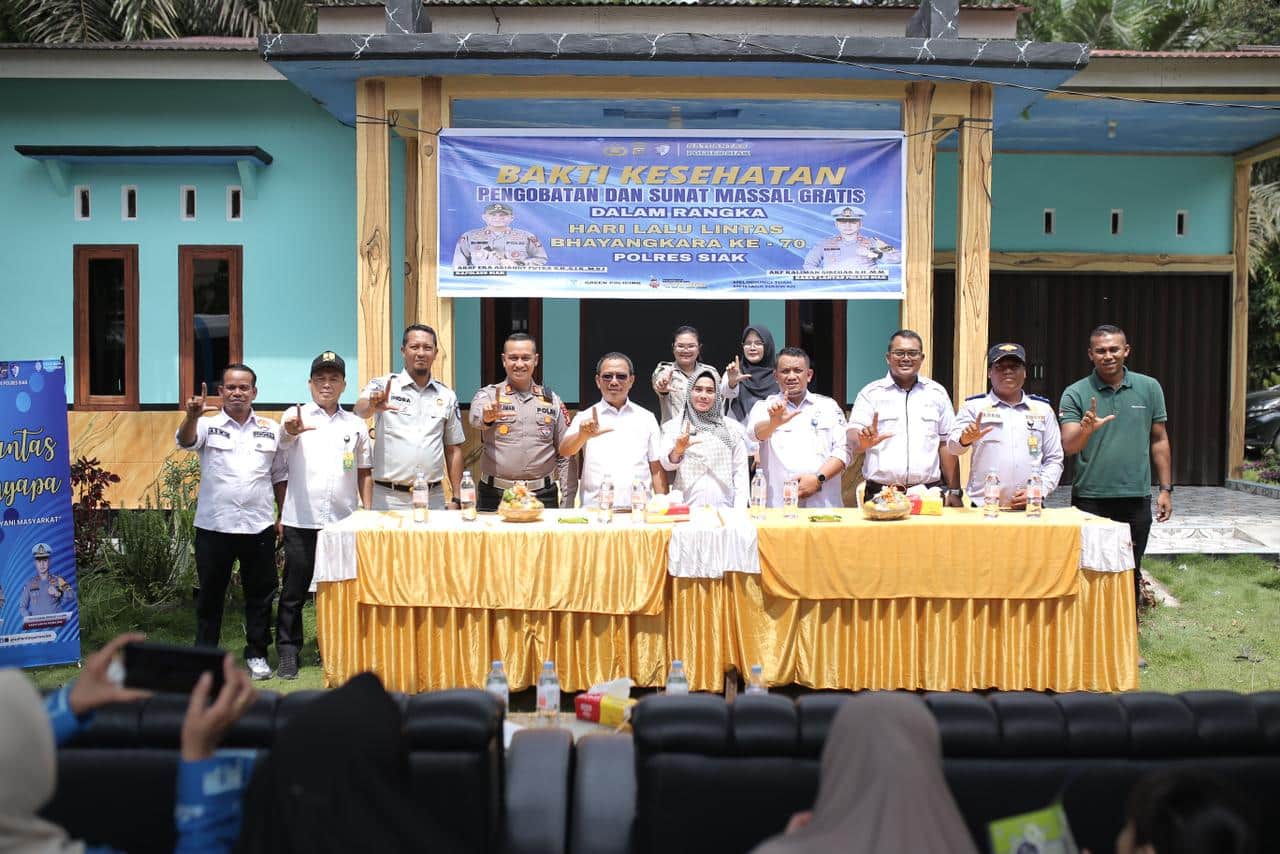 Siak, lintas10.com– Dalam rangka memperingati hari lalu lintas ke 70 Satuan Lalu Lintas (SATLANTAS) Polres Siak menggelar kegiatan Pengobatan Gratis dan Sunat Massal Gratis di Dusun Tertua Lubuk Miam Kampung Kuala Gasib Kecamatan Kotogasib, Rabu (10/9/2025).