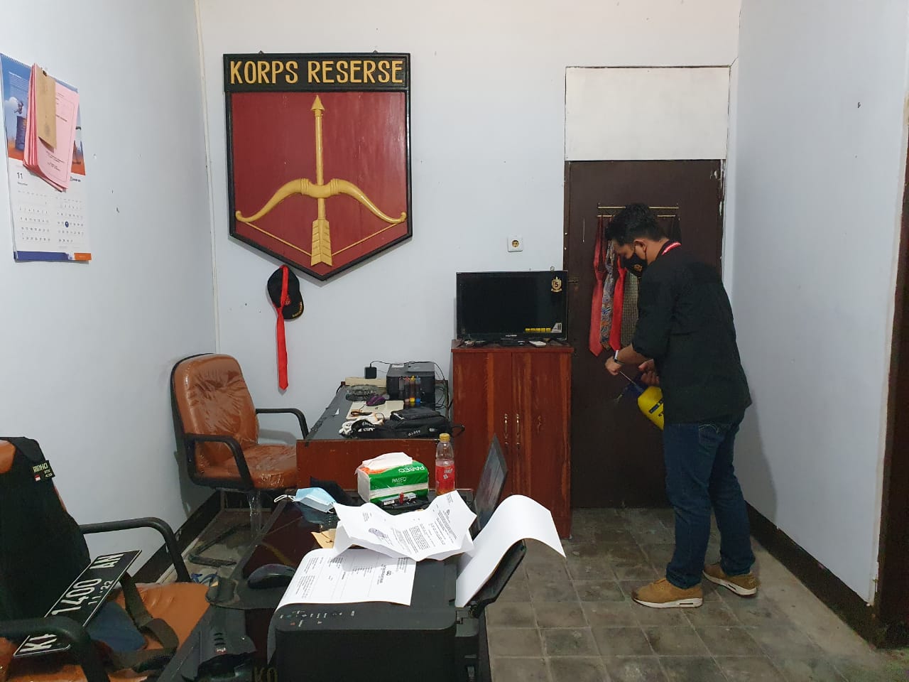 “Dimasa pandemi covid 19 ini kita harus selalu menerapkan protokol kesehatan yang salah satunya adalah menyemprotkan desinfektan di ruang-ruangan tempat anggota bekerja,” papar Rendra.