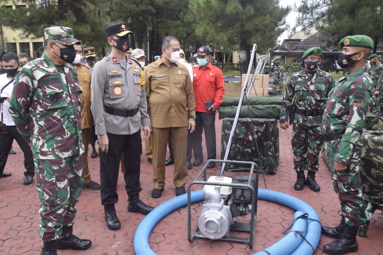 Usai menyampaikan amanat itu, Waka Polda Sumut, Brigjen Pol Dadang Hartanto bersama pejabat yang hadir dalam pelaksanaan apel gabungan melakukan pengecekan kesiapan personil dan sejumlat alat dalam mengantisipasi kebakaran hutan. ( Ly /hum )