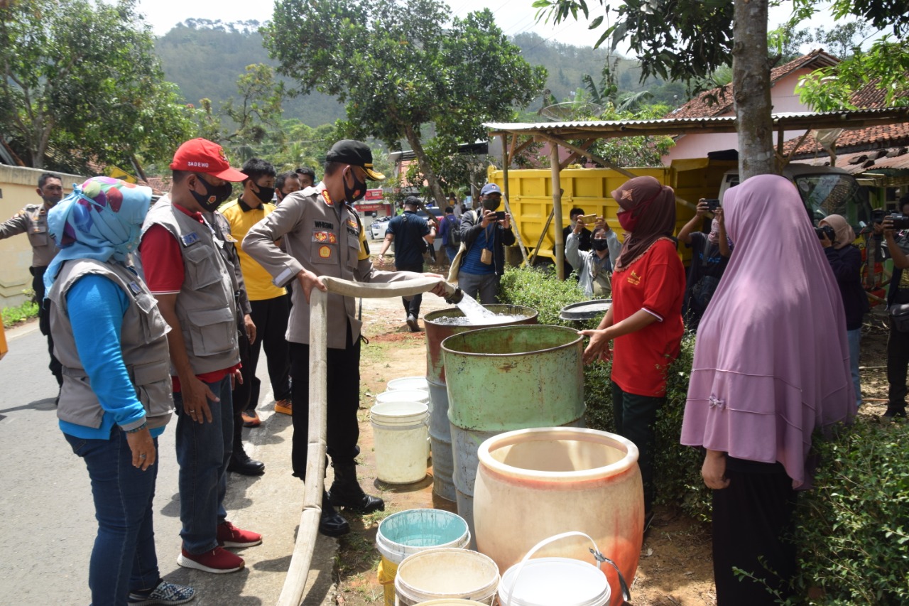 “Kita melihat data yang ada di BPBD dan pemerintah daerah, ada beberapa daerah kekurangan air bersih di musim-musim kemarau. Salah satunya di Desa Kaliputih, yang mulai kekurangan air, kami langsung melakukan kegiatan ini,” kata Kapolresta.