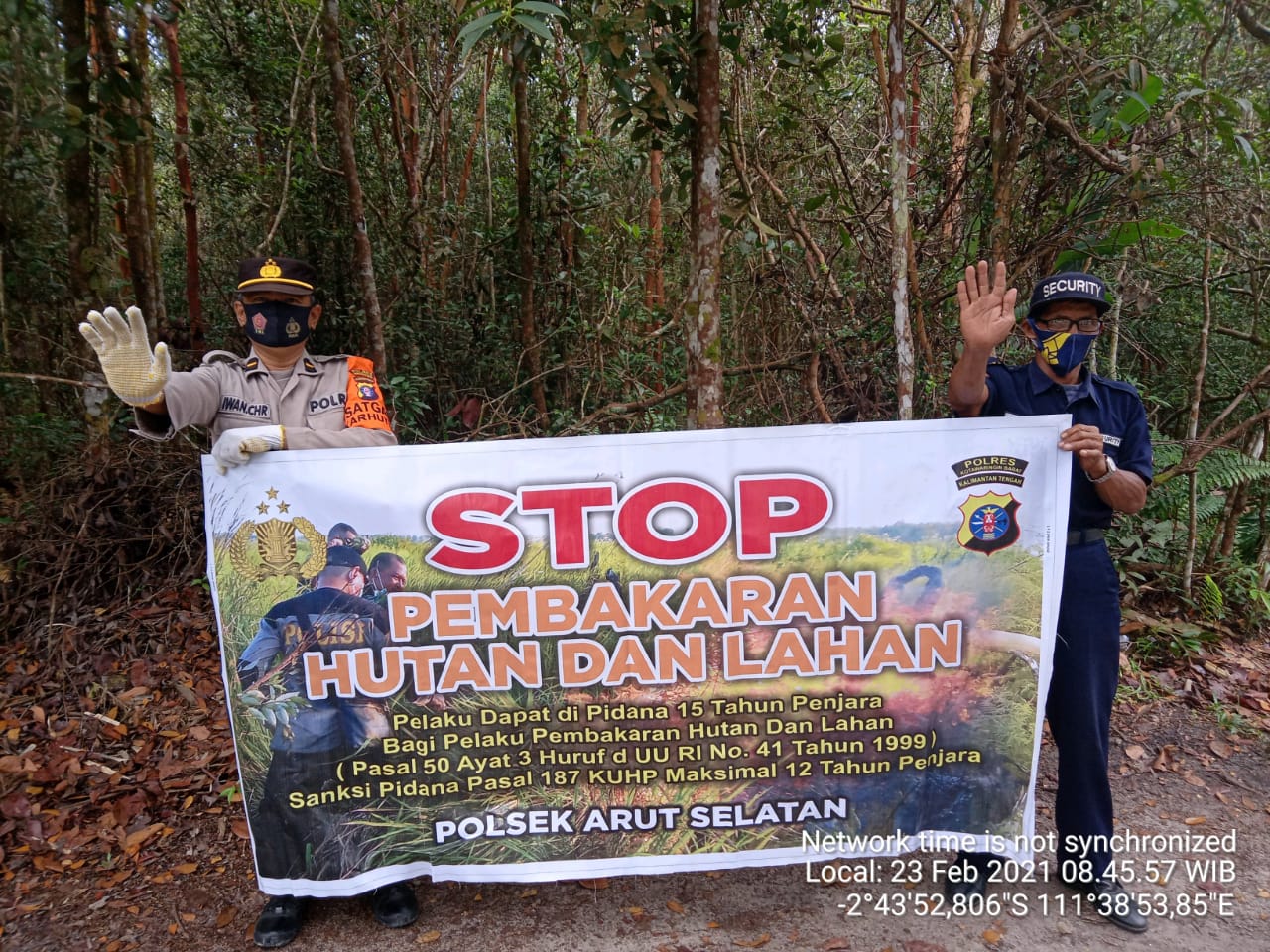 Pangkalan Bun, lintas10.com- Polda Kalimantan Tengah (Kalteng). Polsek Arsel cegah Karhutla melalui Imbauan spanduk. Selasa (23/02/2021) Pagi.