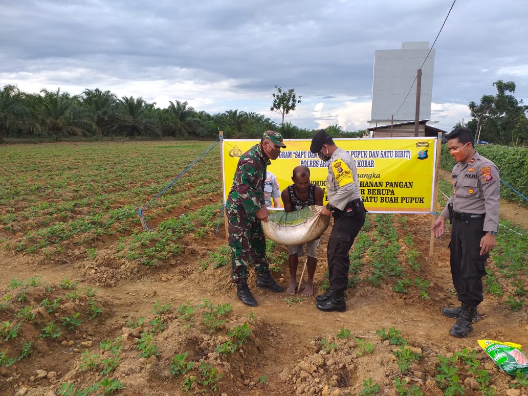 Polsek Arut Utara dalam mendukung ketahanan pangan, Polsek Arut Utara memberikan bantuan berupa satu sak pupuk dan satu jenis bibit Kegiatan ini dilaksanakan Kamis 4 Juni 2020.