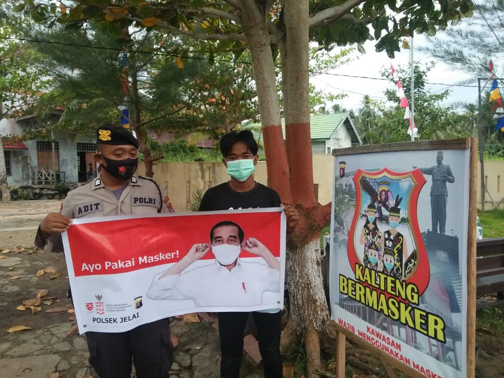 “Pemasangan spanduk bertuliskan Kalteng Bermasker ini , merupakan antisipasi penularan virus Covid-19 yang sampai saat ini masih terus menyebar,” ujar salah satu anggota Polsek Jelai Brigadir Adit.