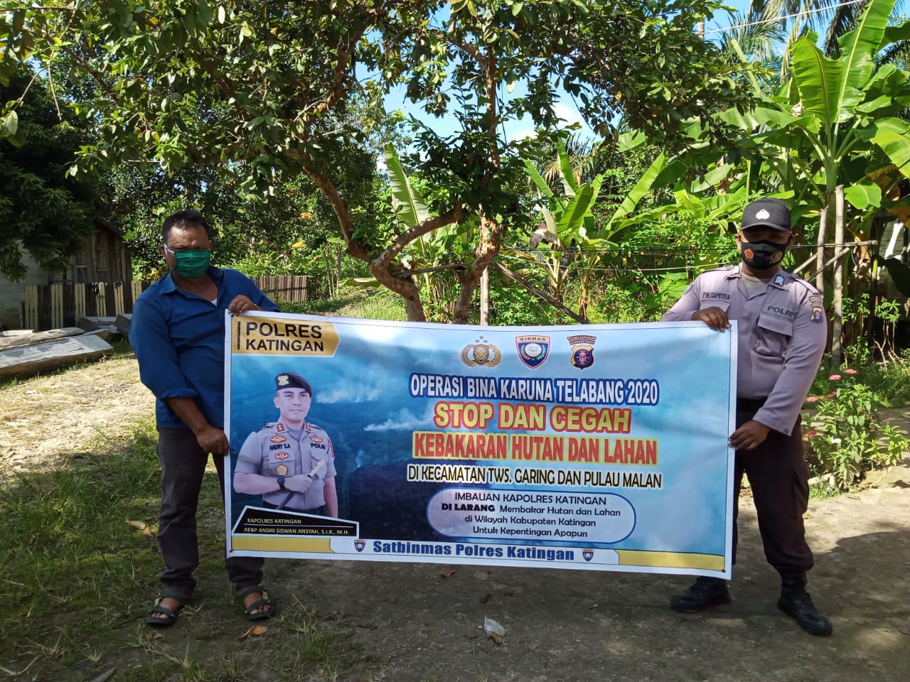 Kalimantan Tengah, lintas10.com- Salah satu cara Polsek Tws. Garing dan Pulau Malan, Polres Katingan, Polda Kalimantan Tengah dalam menangani Dampak Karhutla, Polsek Tewang Sangalang Garing dan Pulau Malan melalui anggotanya Banit Binmas Polsek Tewang Sangalang Garing dan Pulau Malan Bripka Panji Widyan Saputra melaksanakan Sosialisasi operasi bina karuna telabang 2020 stop dan cegah kebakaran hutan dan lahan di kec.tws.garing dan pulau malan “imbauan kapolres katingan di larang membakar hutan dan lahan di wilayah kabupaten katingan untuk Kepentingan Apapun” kepada masyarakat Kel.Pendahara, Kec.Tewang Sangalang Garing, Kab.Katingan, Kalteng, Rabu (19/8/2020) sekira pukul 08.35 WIB.