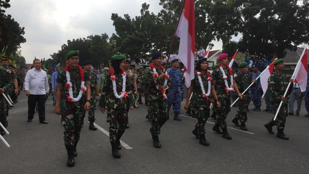 Prajurit TNI Gelar Pawai Kirab Bendera Merah Putih di Pekanbaru