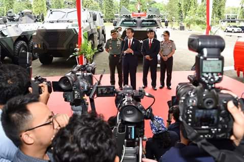 JAKARTA, LINTAS10.COM- Presiden RI Ir. H. Joko Widodo menyampaikan, bahwa industri pertahanan dalam negeri jangan hanya bergantung pesanan dari TNI atau Polri saja, tetapi harus berani menjual ke negara lain, karena semua produk pasti akan berkompetisi dengan negara lain dan tidak mungkin produk tersebut hanya dijual di dalam negeri.