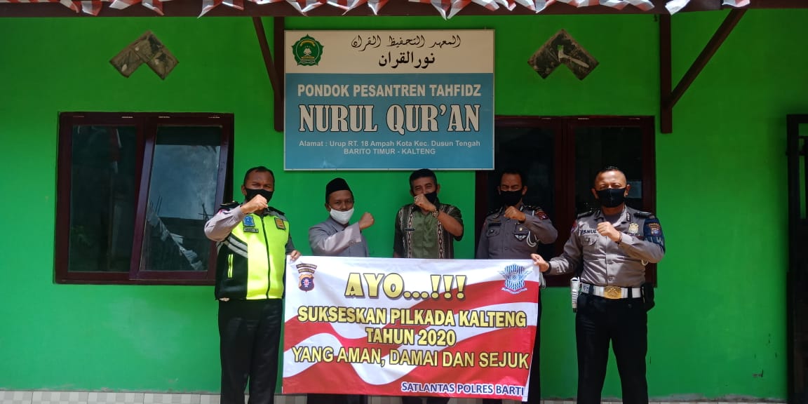 Petugas mendatangi Pengasuh Pondok Pesantren Tahfidh Nutul Qur’an Ustad Imam Syafi’i di Urup RT.18, Kelurahan Ampah Kota, Kecamatan Dusun Tengah, Kab. Bartim, Prop. Kalteng guna mengimbau dan mengajak melalui tokoh Agama Aagar bersama-sama TNI – Polri dan Unsur terkait lainya untuk menciptakan suasana Pemilu Kepala Daerah Prov.Kalteng yang Aman, Sejuk dan Damai.
