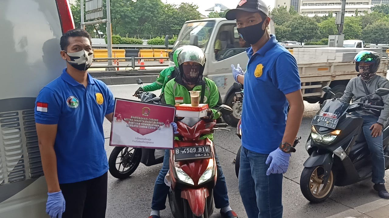 Jakarta Barat, LINTAS10.COM – Berjiwa sosial yang tinggi mendorong hasrat untuk saling berbagi terlebih wabah virus Covid-19 yang melanda Indonesia di saat bulan Ramadhan, Bhayangkari Cabang Metro Jakarta Barat melalui Satuan Narkoba yang dipimpin langsung Kasat Narkoba, Kompol Ronaldo membagikan 150 paket nasi kotak dan takjil kepada pengguna jalan di sekitaran wiilayah hukum Jakarta Barat, Sabtu (25/4/2020).