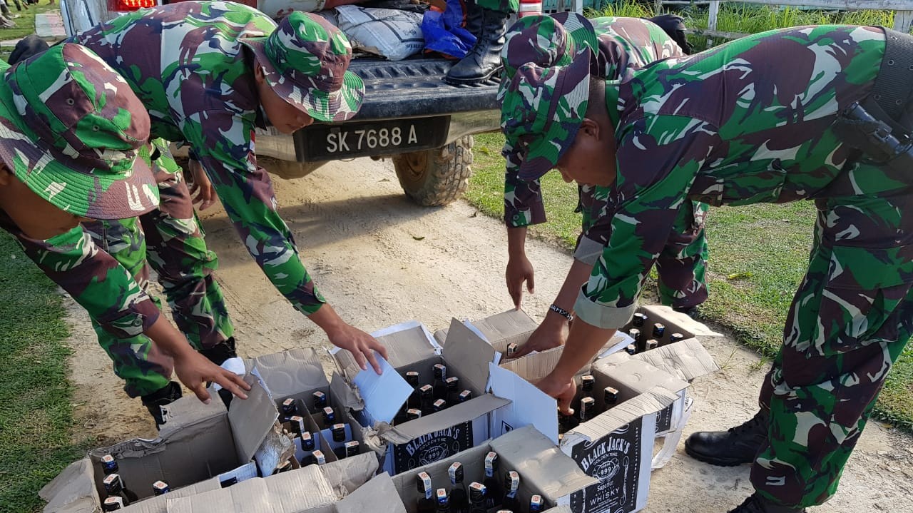 Satgas Raider 613 Raja Alam Amankan 2.295 Botol Miras Ilegal Dari Malaysia