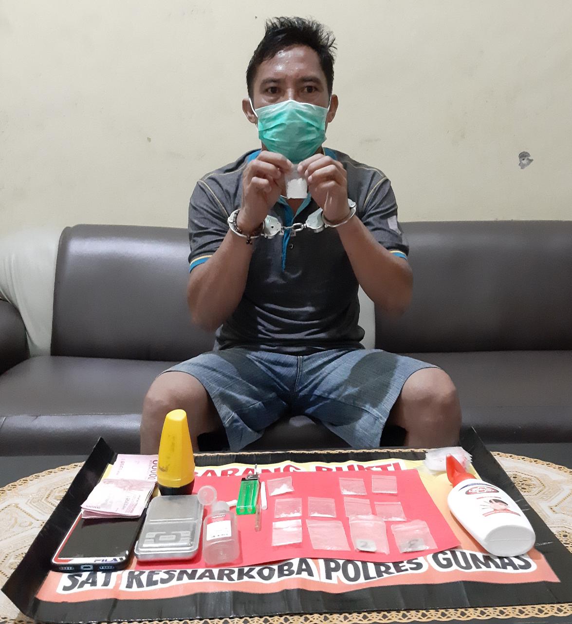 Kapolres Gumas AKBP Rudi Asriman, S.I.K., melalui Kasat Narkoba Iptu Untung Basuki, S.H., menjelaskan bahwa penangkapan pelaku bermula dari informasi masyarakat bahwa di Kelurahan Tewah sering terjadi transaksi jual Narkoba.