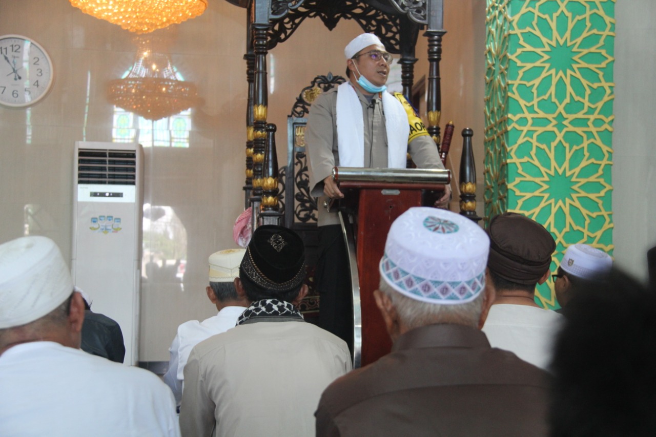 Dalam khutbah jum’atnya Kapolres Kotim menyampaikan berkenaan dengan pentingya peran Keluarga untuk membentuk karakter anak, dengan mencontoh dan meneladani Keluarga Nabi Ibrahim.A.S yang begitu indah cara berkomunikasinya, bagaimana Nabi Ibrahim.A.S sebagai Imam keluarga mampu menyampaikan kebenaran Allah, demikian juga tertanamnya keyakinan Ikhlas putranya yakni Nabi Ismail.A.S dalam menerima perintah Allah demikian juga bagaimana Istri Nabi Ibrahim yang dengan tabah ketika ditinggalkan suaminya dengan mengasuh Nabi Ismail.As kecil, mereka semua ikhlas taat menjalankan semua perintah dan menjauhi larangan Allah.SWT sebagai contoh keluarga Sakinah mawaddah warrahmah.