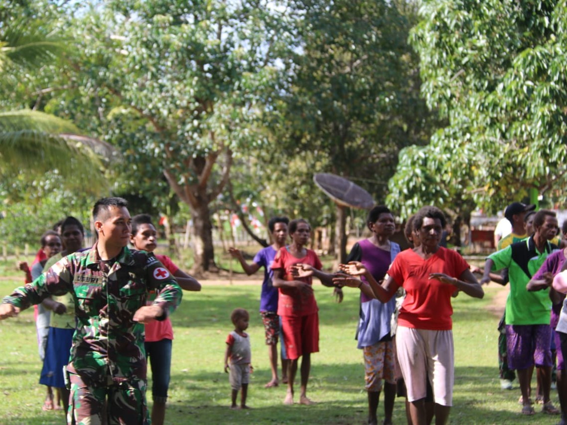 Diungkapkannya, pelaksanaan senam bersama diikuti oleh 31 warga yang dipandu langsung oleh dua orang petugas kesehatan Puskesmas Sota dan empat orang personel Satgas yang dipimpin oleh Dantonkes Letda Ckm Iwan Debri. Para ibu-ibu sangat antusias dan semangat mengikuti gerakan senam dari para pemandu senam yang berdiri di depan mereka.