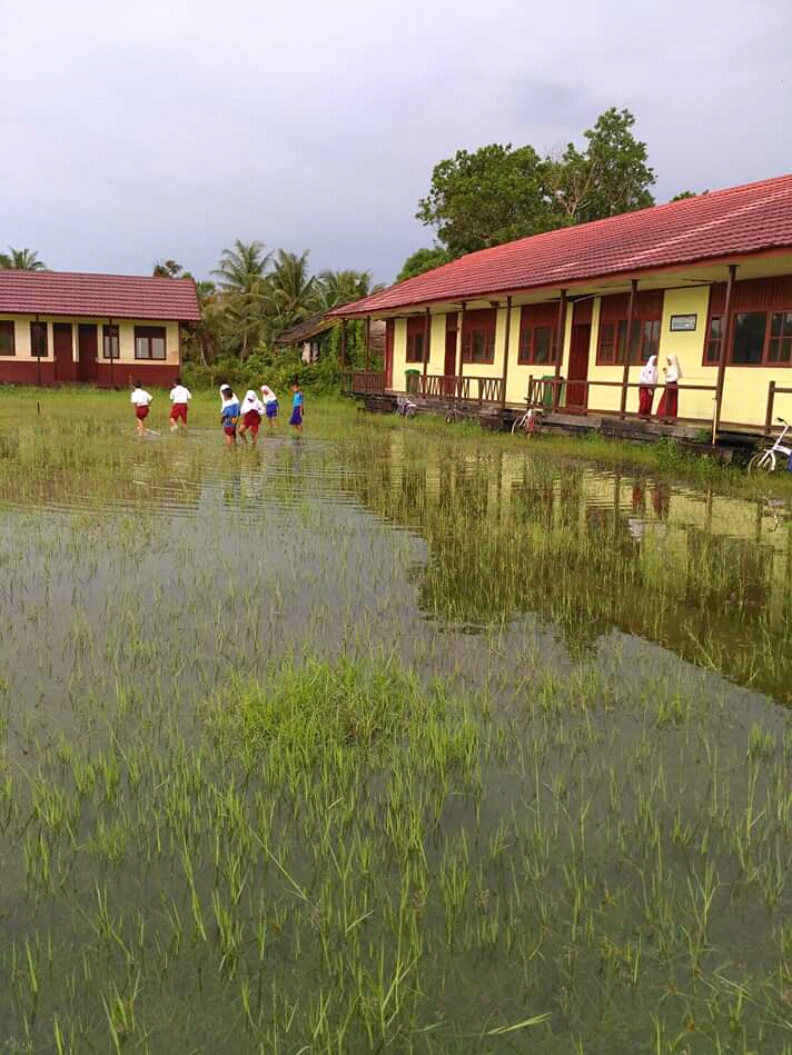 “Namun tidak dipungkiri juga jika sedang turun hujan yang secara dadakan disaat pada pergi ke sekolah pakaian siswa dan guru juga peralatan kegiatan belajar basah, ya terpaksa akhirnya disepakati siswa untuk libur belajarnya,” tambah Amat.