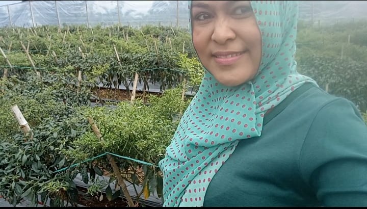 Tidak menyurutkan langkah kaki Keswita (42) yang biasa disapa dengan KS, untuk memetik buah cabai, dari batangnya karena sudah matang.