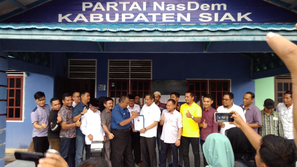Siak, lintas10.com- Tengku Said Hamzah yang juga masih menjabat Sekretaris Daerah Kabupaten Siak mengambil formulir pendaftaran Bakal Calon Bupati dan wakil Bupati Siak ke kantor Partai DPD NASDEM Kabupaten Siak senin (7/10/2019.