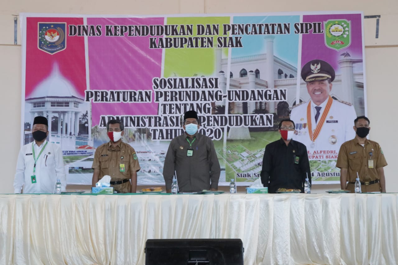 Siak, lintas10.com-Bupati Siak Alfedri membuka Sosialisasi Peraturan Perundang-undangan tentang Administrasi Kependudukan Tahun 2020, yang di taja Dinas Kependudukan dan Pencatatan Sipil Kabupaten Siak, bertempat di Gedung Kesenian Siak, Senin (24/8/20).