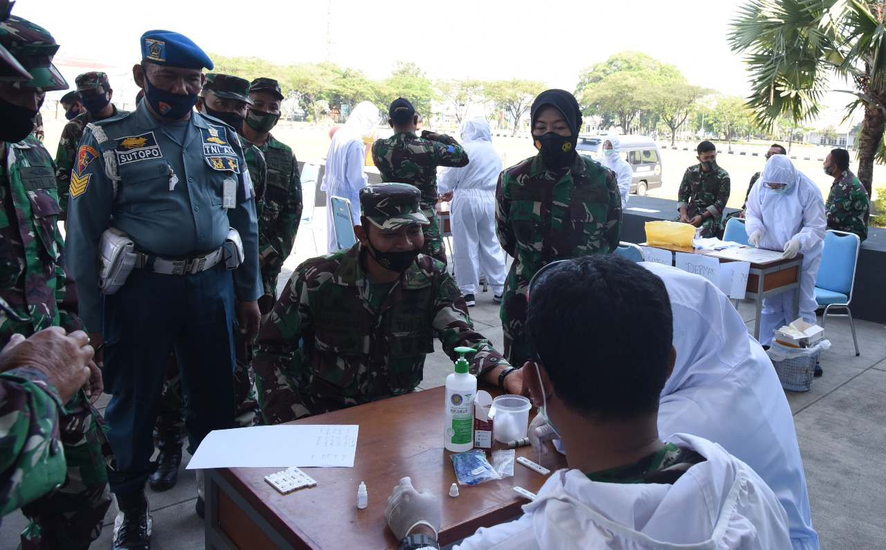 Surabaya, lintas10.com-Sebagai upaya pencegahan dini dan memastikan dalam keadaan sehat, seluruh personel Akademi Angkatan Laut (AAL) pasca pelaksanaan cuti bersama Tahun Baru Islam 1442 Hijriah, menjalani Rapid Test secara bergilir yang digelar usai Apel Pagi di Pendopo Gedung R. Soebijakto, Mako AAL, Kesatrian Bumimoro, Surabaya, Senin (24/8/2020).