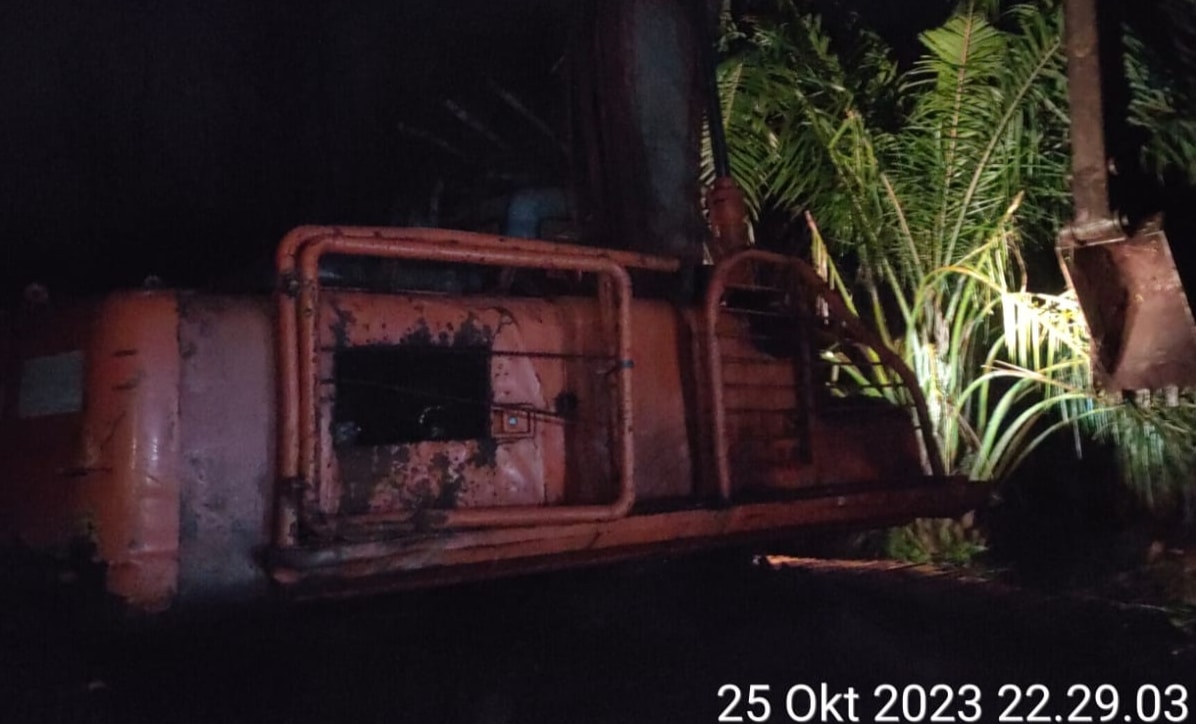 Kotogasib, lintas10.com- Alat Excavator dari PT. Duta Swakarya Indah masuk areal lahan warga tanpa ada izin hal itu terjadi Kamis Malam (25/10/2023). warga pemilik lahan yang mendapat kabar langsung ke lokasi melakukan penyetopan bahkan sempat terjadi adu mulut dengan Marsono selaku manager Perusahaan.
