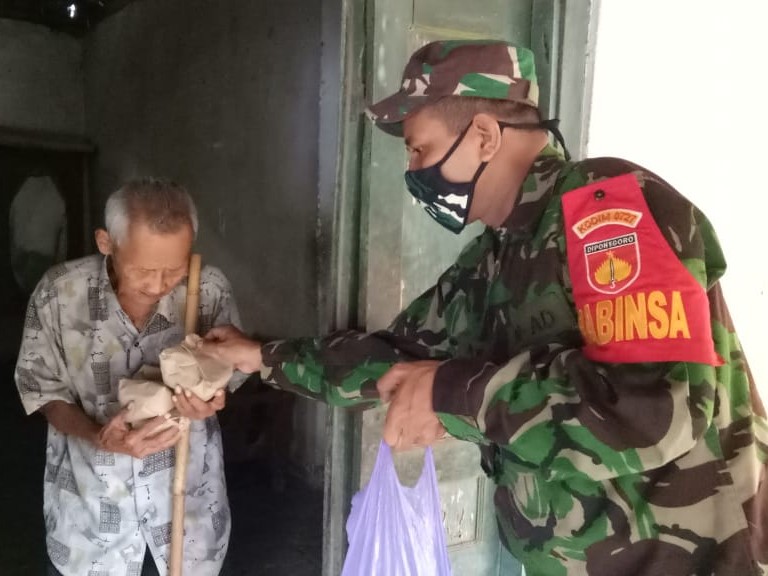 Karanganyar, LINTAS10.COM – Kodim 0727/Karanganyar membuat gerakan pembagian nasi bungkus untuk masyarakat kurang mampu. Gerakan ini dinamakan “Wong Cilik Ojo Nganti Ngeleh” yang artinya rakyat kecil jangan sampai kelaparan di tengah wabah Covid-19.